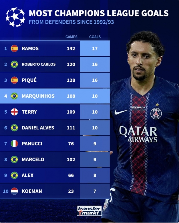 9月18日讯 德转列出1992-92赛季以来,欧冠赛场后场球员得分 榜单,苏超直播拉莫斯位居第一位。