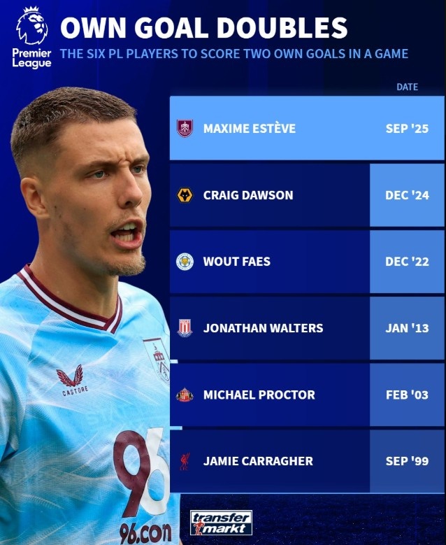 9月28日讯 英超第6轮赛事 ,伯恩利在伊蒂哈德运动活动 场 以1-5的比分大败 曼城。本场赛事 ,伯恩利后场球员艾斯特福非常不走运,他乌龙双响让对手收获两球。