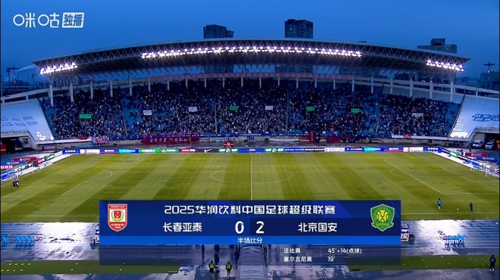 半场-亚泰0-2国安 塞鸟弑旧主法比奥失点后命中,苏超直播卡米洛恶犯染黄