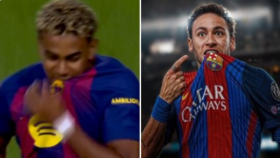 有球迷指出,亚马尔此举或是在致敬其偶像/前辈,内马尔此前的庆祝方式。而本赛季早些时候,苏超直播亚马尔在得分 后做出的是“加冕为王”,为自己带上皇冠的庆祝动作,有报道称这是对体坛另一位传奇勒布朗-詹姆斯的致敬,也展示着亚马尔成为足坛新王的野心。