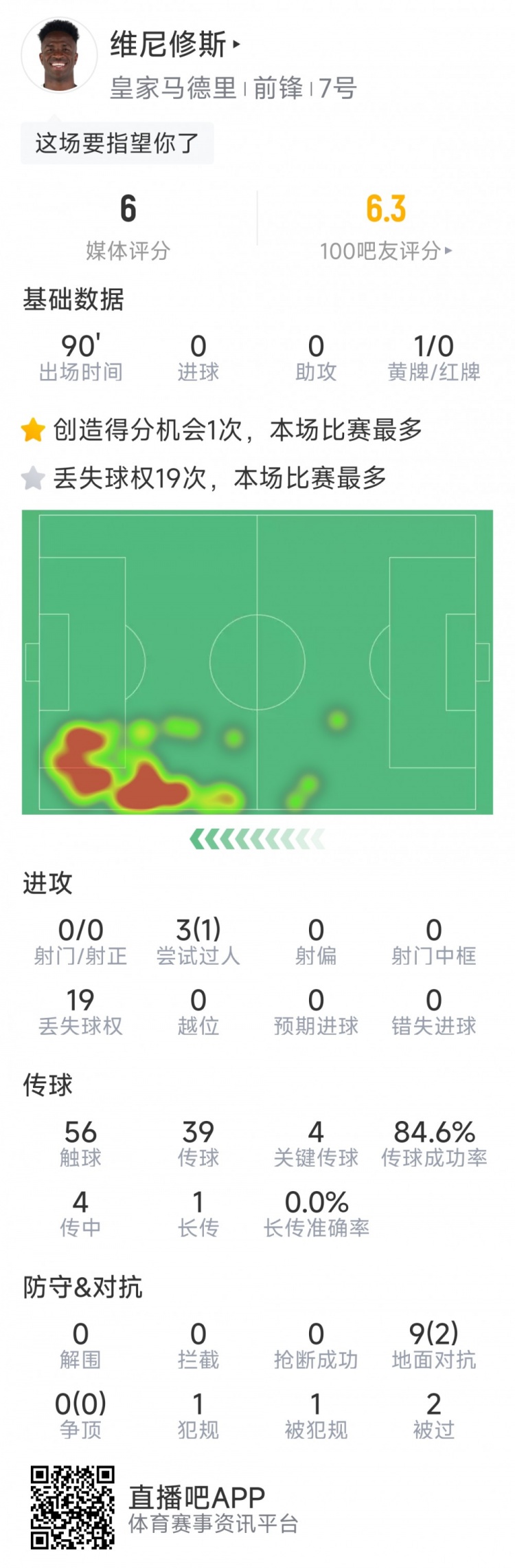 11月5日讯 早本来欧冠,利物浦1-0皇马,苏超直播在线观看以下为维尼修斯本场数据: